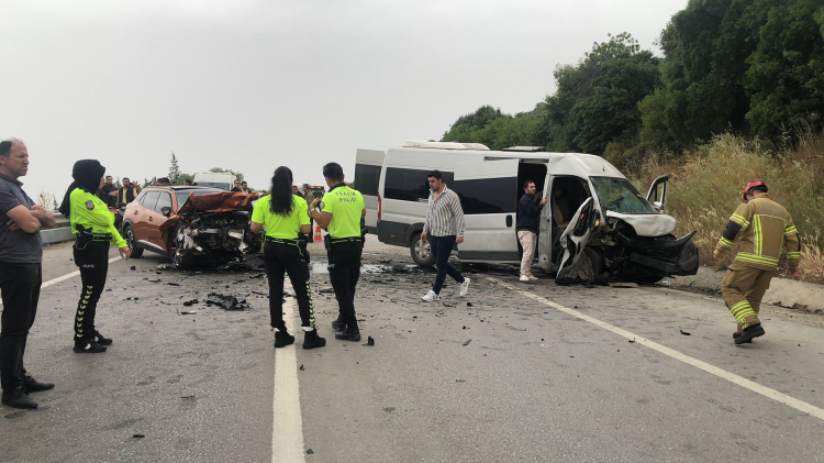 Bursa'nın Gemlik ilçesinde minibüs ile otomobilin kafa kafaya çarpıştığı kazada 2'si ağır 12 kişi yaralandı.