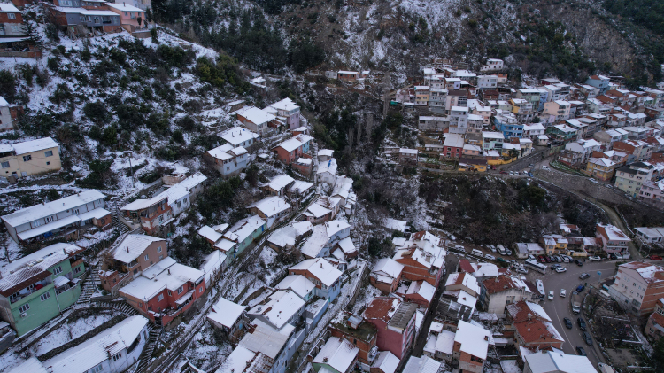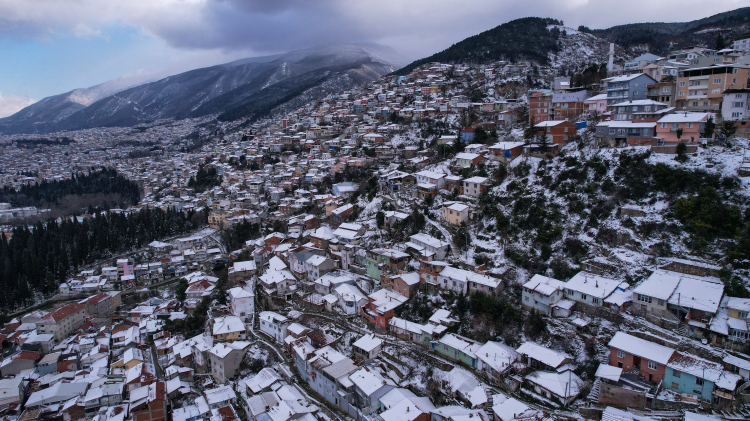 Şehrin yüksek yerlerinden Ulucami ve Uludağ'ın muhteşem görüntülerine yamaçlardaki rengarenk evler eşlik etti. Bu güzel manzara havadan görüntülendi.
