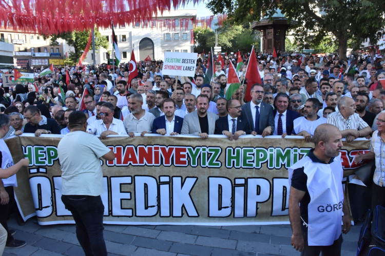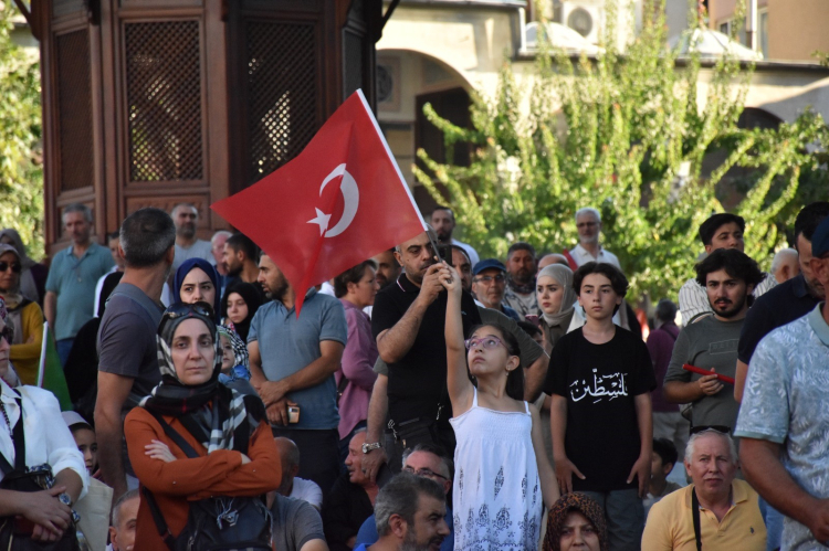 Bursa Gönüllü Kuruluşlar Platformu'nun çağrısıyla binlerce kişi, ellerinde Filistin bayrakları ve pankartlarla Ulu Cami önünde toplandı. İsrail’in Gazze’ye yönelik saldırıları ve Hamas Siyasi Büro Şefi İsmail Haniye’ye düzenlenen suikast protesto edildi. AK Parti Bursa milletvekilleri Osman Mesten, Ahmet Kılıç ve Refik Özen, Yıldırım Belediye Başkanı Oktay Yılmaz, Kestel Belediye Başkanı Ferhat Erol ve Uludağ Üniversitesi Rektörü Prof. Dr. Ferudun Yılmaz'ın da katıldığı protestoda Ulu Cami önünden başlayan yürüyüş, 15 Temmuz Demokrasi Meydanı’nda son buldu. Yürüyüş sonrası İsmail Haniye ve şehitler için Kur'an-ı Kerim okunarak, dualar edildi.