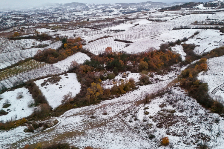Önceki gün aniden bastıran kar yağışı sonrası beyaz örtüyü üzerine giyen doğa, sonbahar renkleriyle karışınca ortaya kartpostallık görüntüler çıktı.
