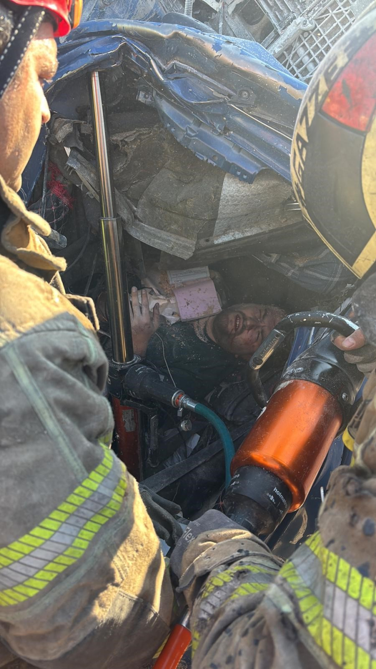 Kaza sonucu kabin içinde sıkışan sürücü Ahmet U.'yu kurtarmak için itfaiye ekipleri zamanla yarıştı. Demir yığınındaki Ahmet U.'ya ekipler "dayan" dediler. Takoz yardımıyla kurtarma için alan oluşturulup Ahmet U.'nun dışarı çıkması sağlandı. Yaralı olarak hastaneye kaldırılan 45 yaşındaki Ahmet U.'nun hayati tehlikesinin bulunmadığı bildirildi.