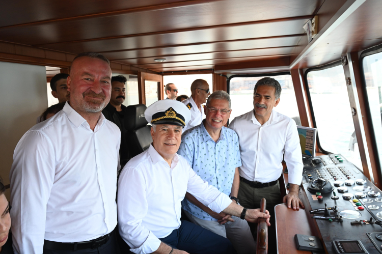 Konuşmaların ardından Başkan Mustafa Bozbey ve protokol üyeleri, açılış pastasını ve açılış kurdelesini kestikten sonra körfez seferlerini başlatan gemiye geçti. Kaptan şapkasını takarak Kaptan Köşkü’ne geçen Başkan Mustafa Bozbey, gemi sirenine basarak körfez seferlerinin ilk turunu başlatmış oldu.