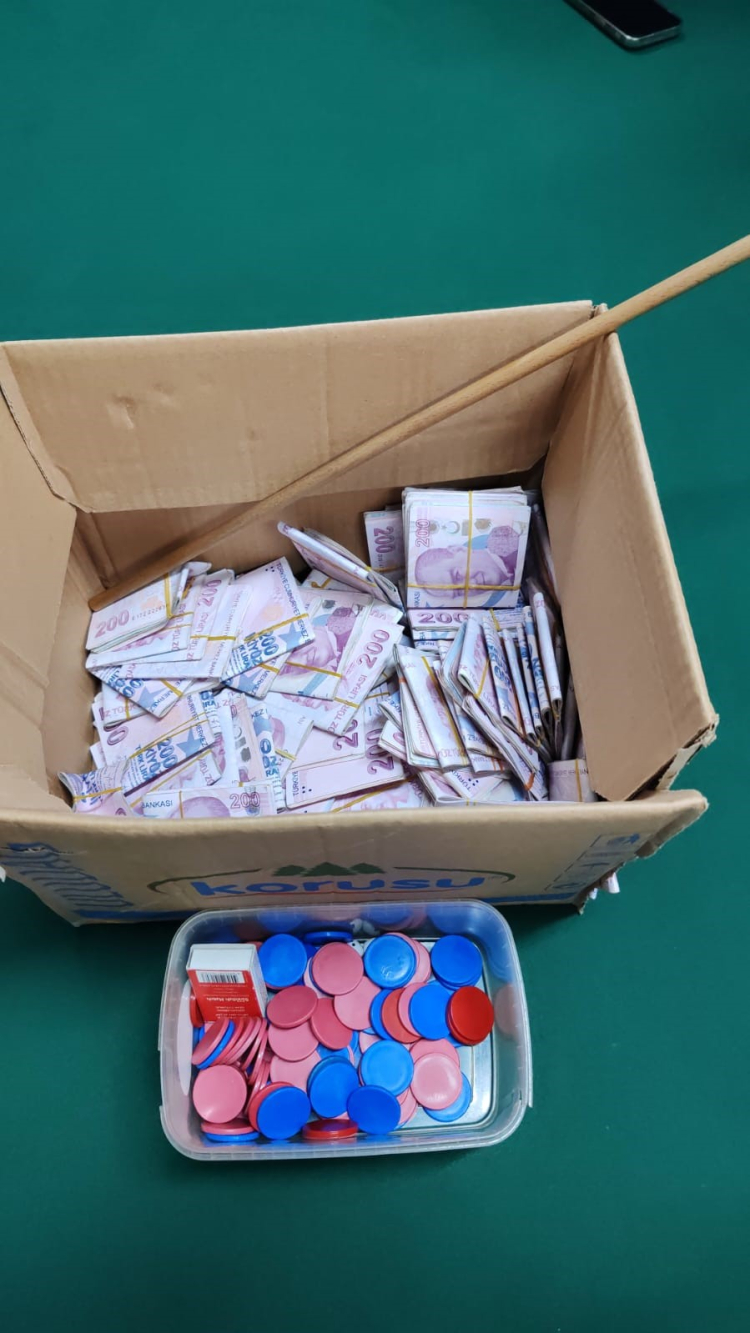 En uygun zamanda operasyon için düğmeye basan ekipler, kıraathaneye girerek kumar oynayanları suçüstü yakaladı. Yapılan aramalarda 2 zar, kumar oyunlarında kullanılan 110 adet pul ve 143 bin 500 lira ele geçirildi. Kıraathane sahibi Z.T. ve kumar oynayan 4 kişi gözaltına alındı.