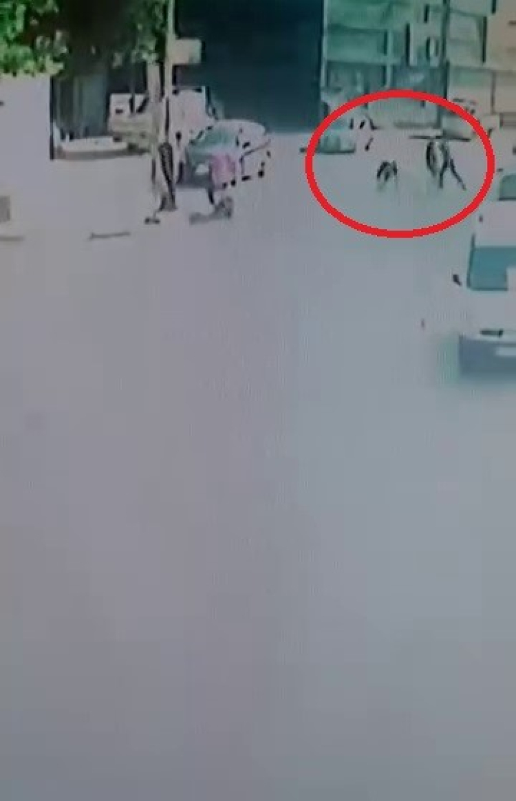 Yaşananlar çevredeki bir iş yerinin güvenlik kamerasına saniye saniye yansırken, kurye saldırıdan yara almadan kurtuldu.