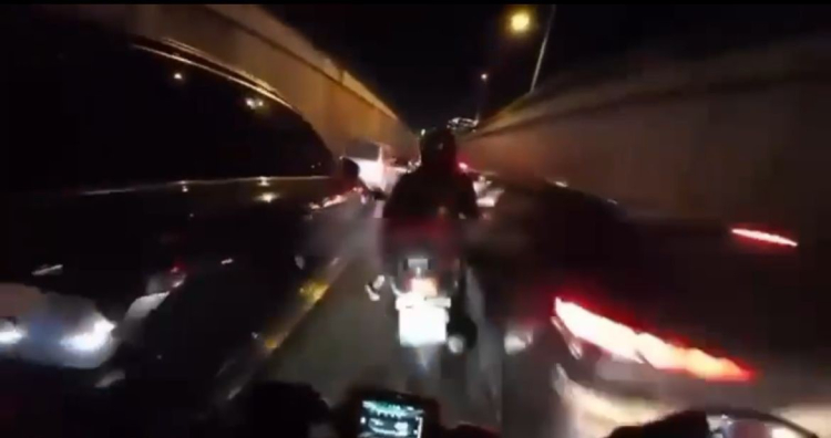 Bursa’nın Osmangazi ilçesinde anayolda seyir halindeki bir motosikletli araçların arasından hızla ilerlerken, iki otomobilin arasında sıkıştı.