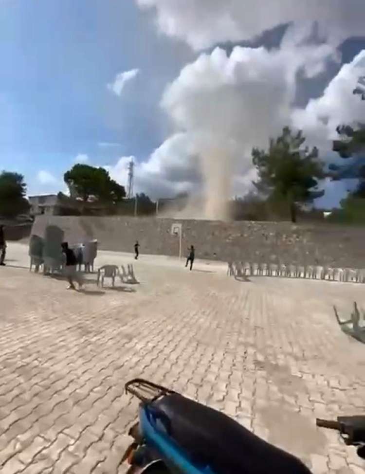 İlçe meydanında çıkan hortum etkinlik için meydana dizilen sandalyeleri havada uçuştururken, bir süre sonra gözden kayboldu.