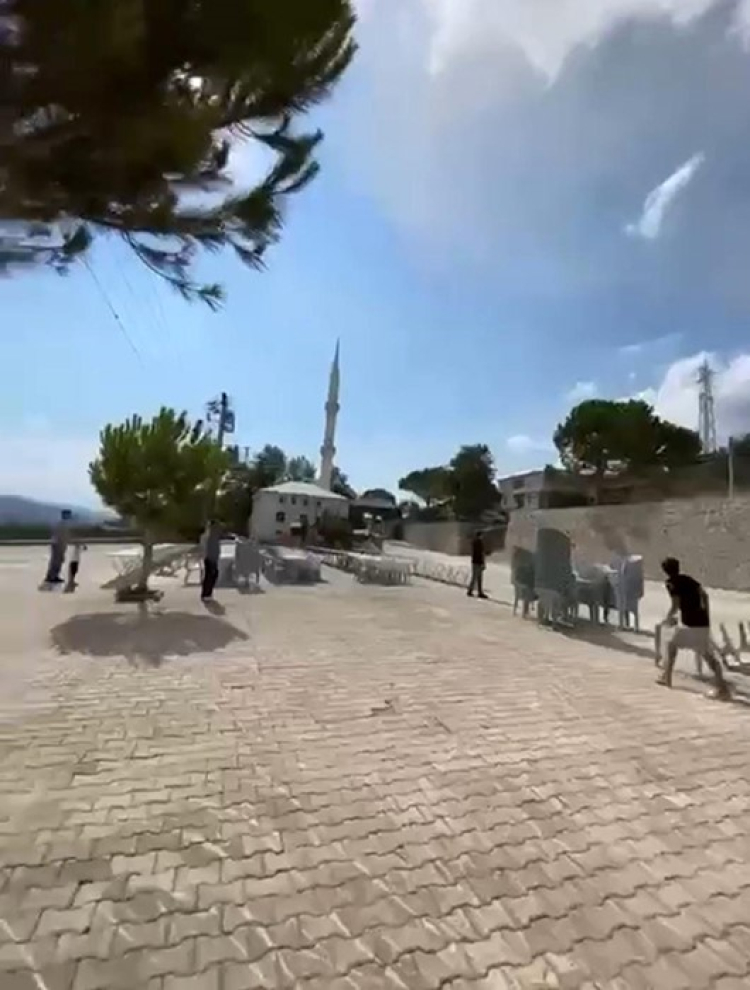Etkinlik için meydana koyulan sandalyeler havada uçuşurken, o anlar kameraya yansıdı.