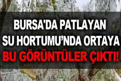 Bursa'da patlayan su hortumundan çıkan sular, soğuk havayla birlikte ortaya buz heykellerini çıkarttı.