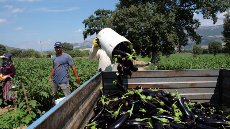 Bursa Orhangazi'de tarım sektörünün en önemli ürünlerinden olan patlıcan için hasat başladı.