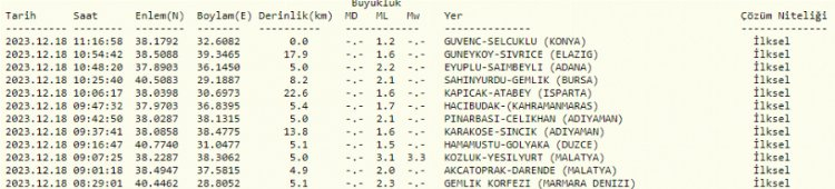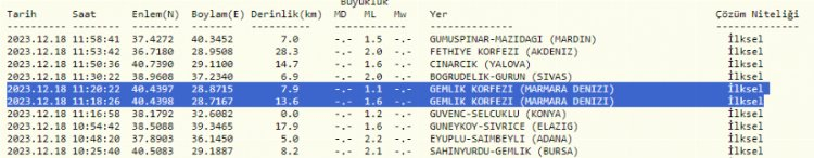 11:18 ve 11:20'de Gemlik Körfezi'nde 1.6, 1.1 olmak üzere 2 sarsıntı daha yaşandı.