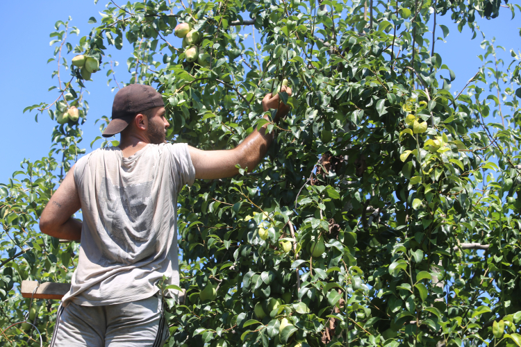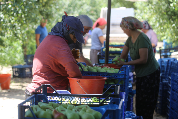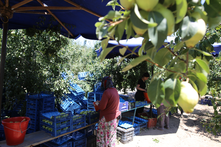 İşçi bulmanın zor olduğunu kaydeden Uğur, 40 dereceleri bulan sıcaklıklara rağmen üniversite öğrencilerinin tarlada hasada destek verdiklerini söyleyerek, "Normalde çalıma saatlerimiz 8.00-17.00 ama biz 6.00-15.00 arasında çalışıyoruz. Yapılan anlaşmaya göre farklı saatlerde de çalışan var. Armudun budaması eylül ayında başlayıp nisan ve mayıs ayına kadar devam ediyor. Şubat ayında da ilaçlaması başlıyor. Armudun bu zamana kadar gelmesi çok zorlu bir süreçten geçiyor. Armut ağacının yetişmesi aşağı yukarı 30 yıl sürüyor. 100 dönüm kadar Santa Maria hasadı yapılıyor. 20'şer kişiden oluşan 3 grup halinde çalışıyoruz. 5-6 kişi günde 20 ton mal topluyor. İşçi bulmak biraz zor. Daha doğrusu işini iyi yapan yok. Üniversite öğrencileri bize destek oluyor. İşçilerin aldığı para çalışma saatine göre değişiyor. 900 liraya da çalışan da var, bin liraya da çalışan var. Armudun kilosunun fiyatı tarladan çıkma büyük boy 35 lira, küçük boyları ise 17-18 lira arası" diye konuştu.