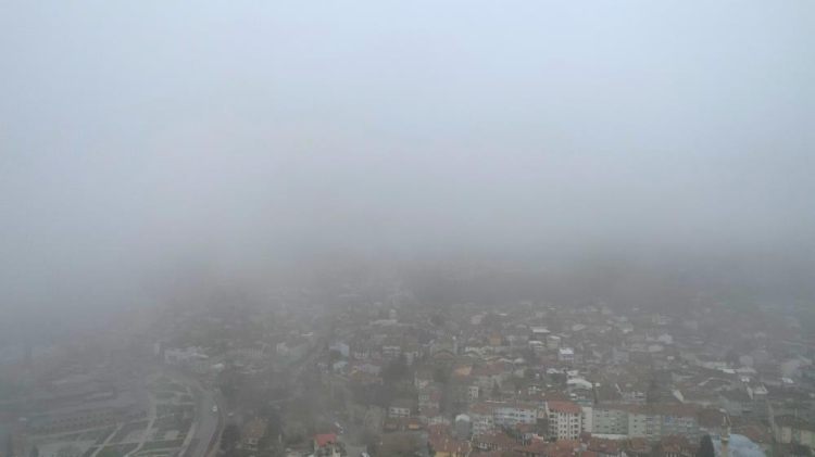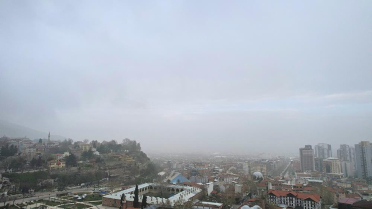 Sabahın ilk saatlerinde özellikle yamaç bölgelerde yoğun şekilde görülen sis tabakası, zamanla aşağı kesimlere doğru inerken şehir silüetini de kapladı.