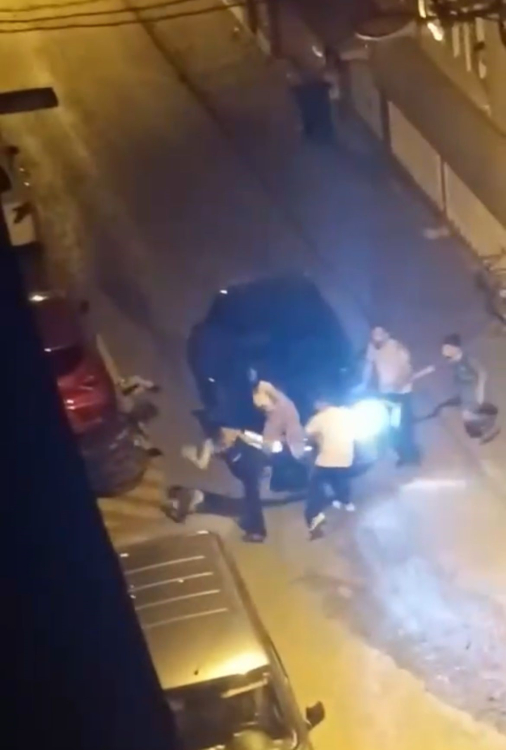 Bir kişinin tarafları ayırmasıyla tansiyon düşerken, gençlerin sokağı ringe çevirdiği anlar kameraya anbean yansıdı.