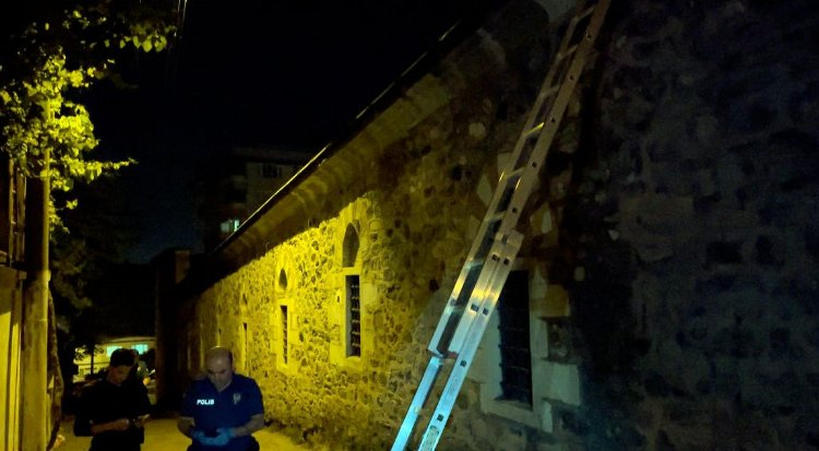 Bursa’da, iki şüpheli Osmanlı Devleti'nin ilk hastanesi olan 634 yıllık Yıldırım Darüşşifası’nın kubbesindeki kurşun levhalarını sökmek için tırmandığı çatıda bekçileri görünce mahsur kaldı.