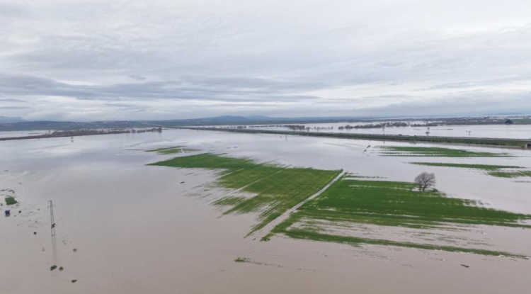 Bursa'nın Karacabey ilçesinde, Bayıraltı mevkiinde bulunan ve otoban güzergahına kadar uzanan geniş tarım arazileri suyla kaplandı. Bölgede ekili ürünlerin zarar gördüğü öğrenildi.