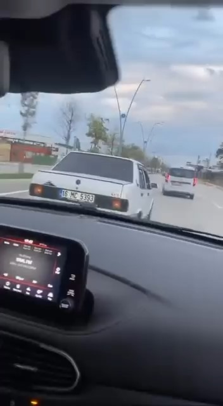 Trafiği de tehlikeye atan sürücünün görüntüsü arkadaki sürücü tarafından saniye saniye kaydedildi.
