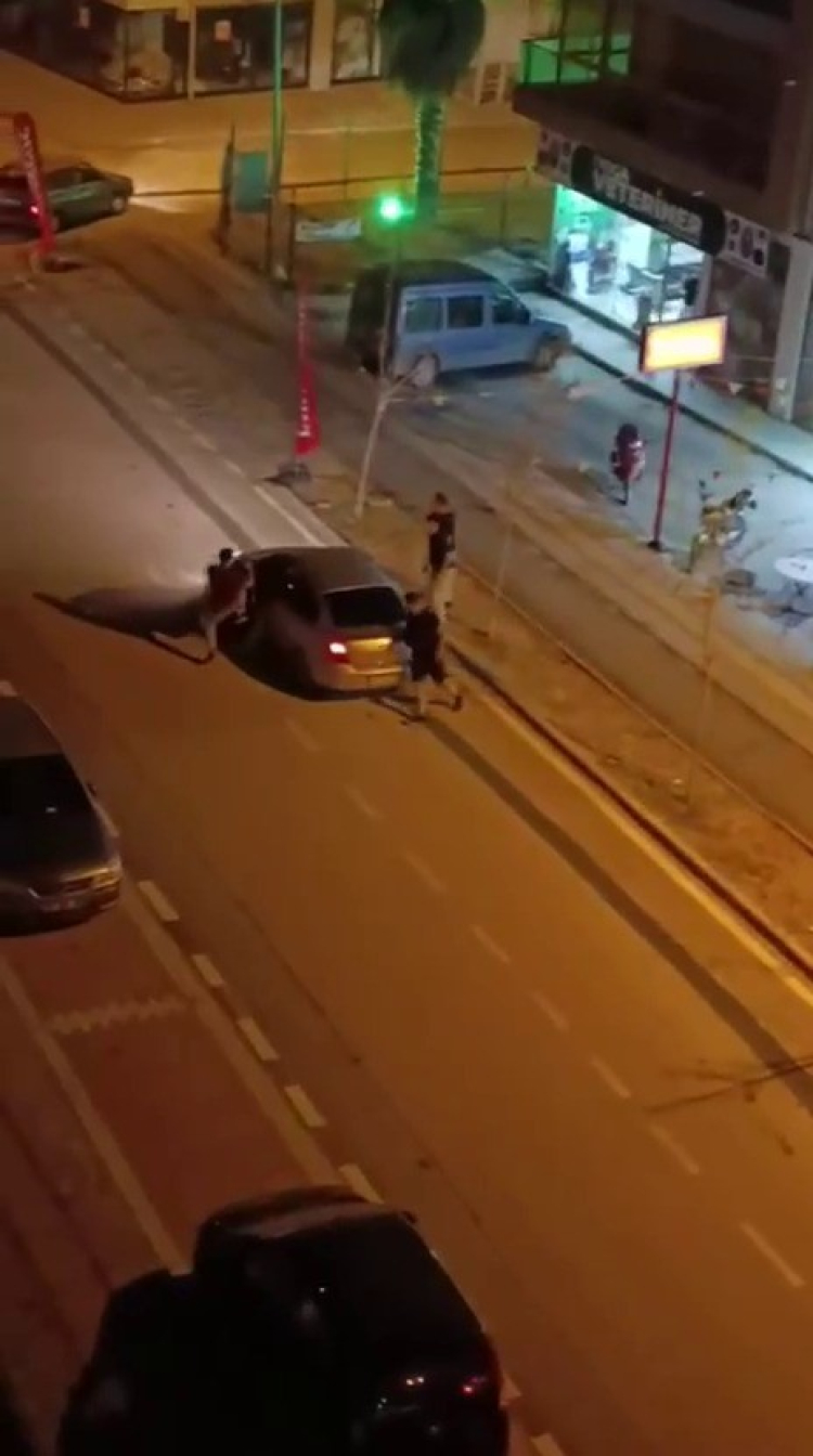 Caddenin adeta ringe döndüğü kavga, saniye saniye kameraya yansıdı.
