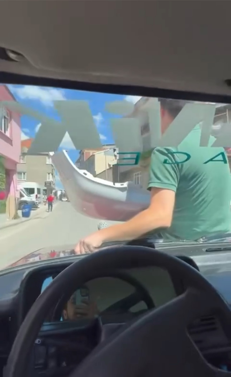 Bir süre sonra hareket eden otomobilin kaputunda giden kişiyi gören vatandaşlar gördüklerine inanamadı.