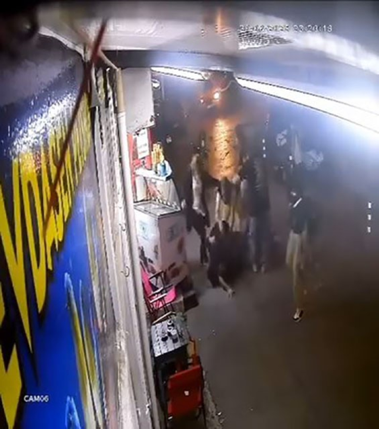 Taraflardan birinin yakını olan kadın ise tekme ile kavgaya dahil oldu.