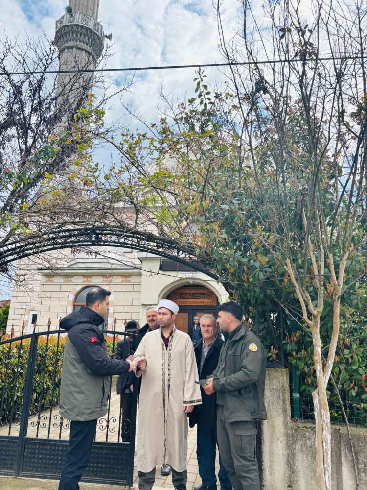 Cami cemaatini de ziyaret ederek orman yangınlarının önlenmesi hedefiyle gerekli bilgilendirmeler yapan ekipler, önleyici tedbirler hakkında açıklamalarda bulundu.