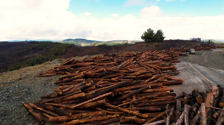 Yangın sonrası bölgenin havadan görüntülendiği çalışmalarda, yanmış ağaçların kontrollü şekilde kesildiği ve sahadan kaldırıldığı kameralara yansıdı. Yetkililer, kesim işlemlerinin tamamen yeniden orman kurma ve güvenli saha oluşturma çalışmaları kapsamında yapıldığını vurguladı.