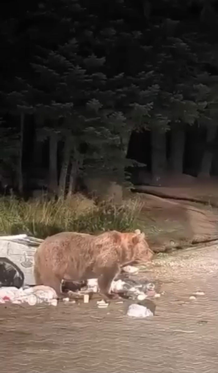 Türkiye’nin önemli turizm merkezlerinden biri olan Uludağ Sarıalan’da acıkan bir ayı, yemek arayışına çıktı.