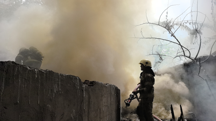 Bursa'da Yıkımına Başlanan 6 Katlı Apartmanın Bahçesinde Yangın Çıktı