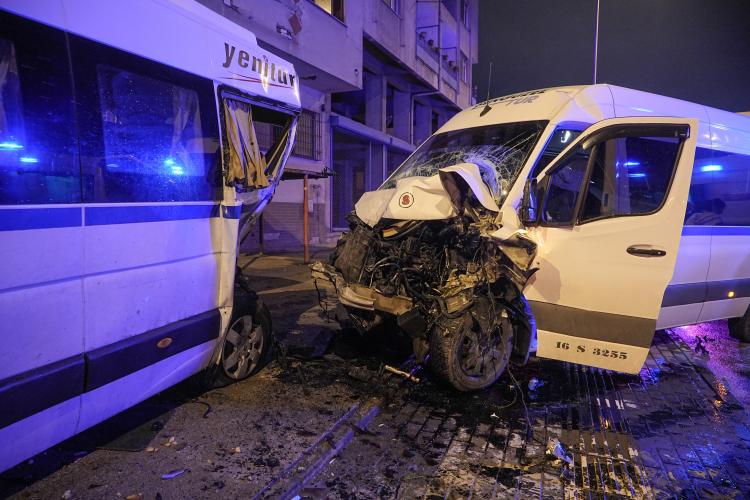 Bursa'nın Yıldırım ilçesinde 2 servis minibüsü, kamyonet ve hafif ticari aracın karıştığı kazada 3 kişi yaralandı.