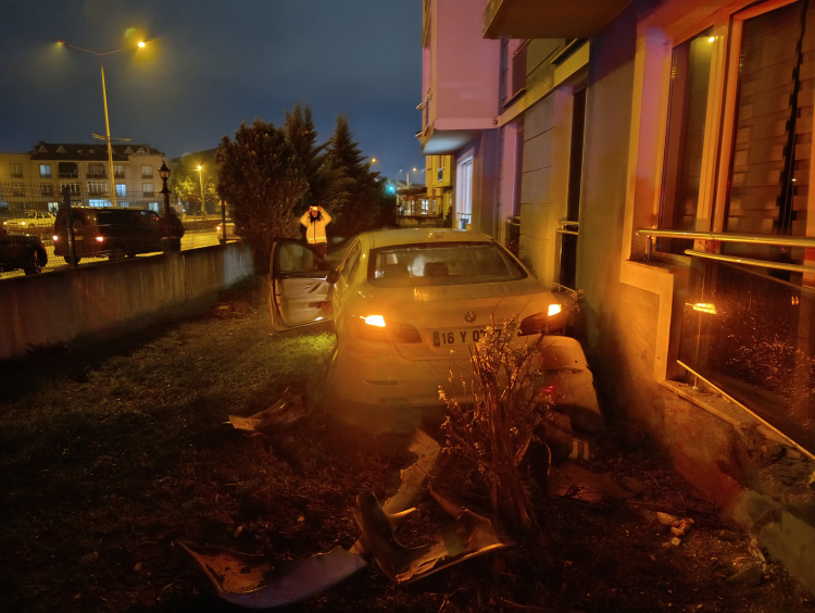 Bursa'da Zincirleme Kaza! Kontrolden Çıkan Otomobil Site Bahçesine Uçtu: 3 Yaralı