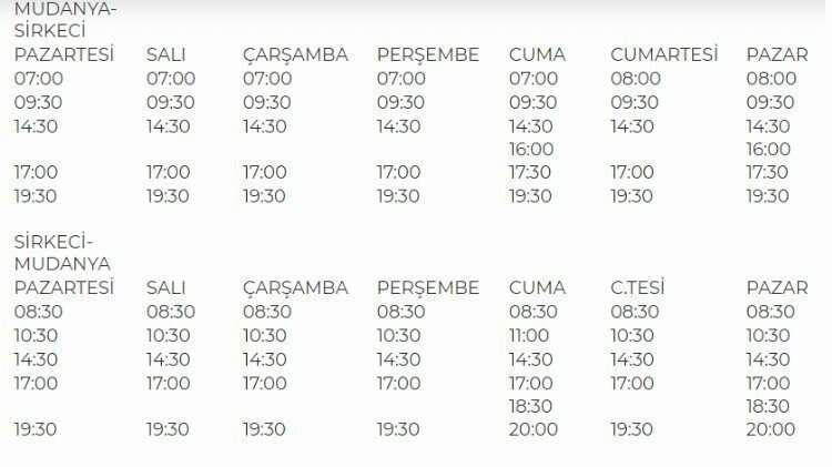 Bursa Mudanya-Sirkeci ,Sirkeci-Mudanya deniz otobüsü sefer ve saatleri...