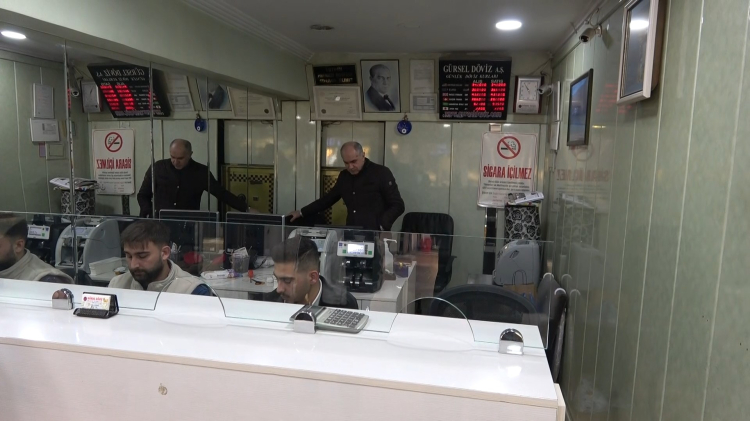 Bursa'da kapalı çarşı esnafı elle inceleyerek döviz alımına devam ediyor.