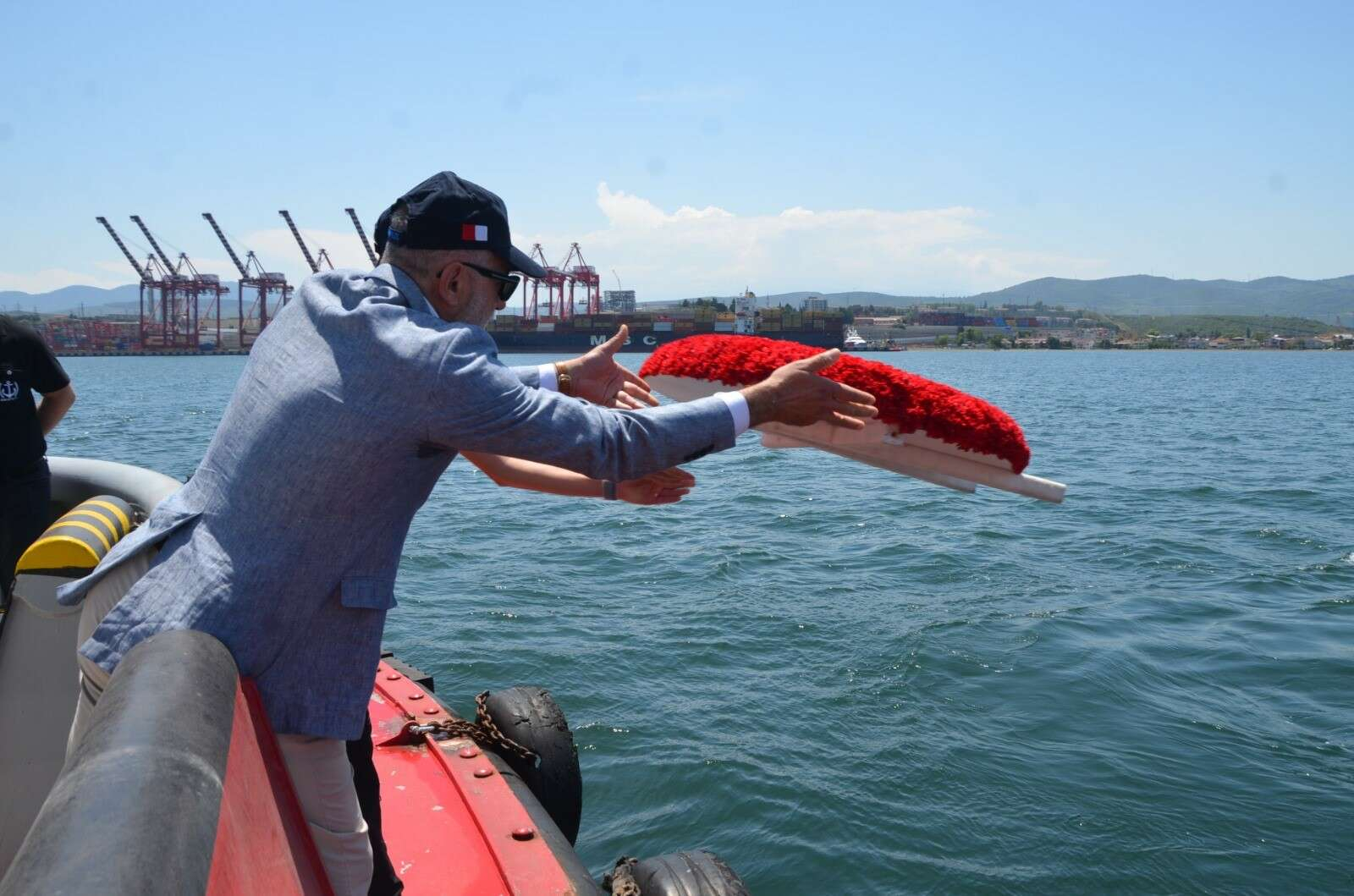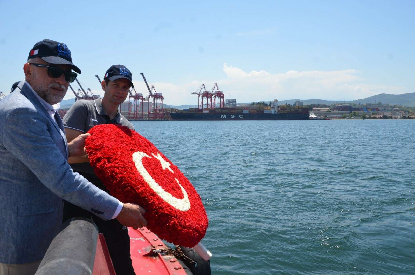 Konuşmanın ardından Işıkcı ve beraberindekiler Kılavuz kaptanlar haftası ve Meslek şehitlerini anma programı çerçevesinde deniz çelenk attılar.
