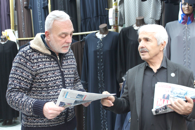 Gazete dağıtımı sırasında esnafla dertleşen heyet, ekonomik zorlukları yerinde gözlemledi. Birçoğu siftah yapamadan günü tamamlamaya çalışan esnafın sorunlarına her fırsatta kulak verdiklerini belirten Akyıldız, çözüm olarak Millet Partisi’nin ‘Muhteşem Türkiye’ projesini işaret etti.
