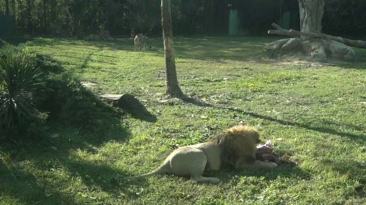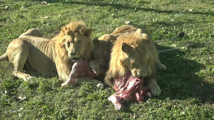 Tabiatta zamanlarının büyük bir kısmını yiyecek bulmak, yuva yapmak ve kendi hakimiyet alanlarını korumak için geçiren aslanların hayvanat bahçesinde veteriner, biyolog ve yetkililer tarafından kalorileri tek tek hesaplanan gıdalarla beslenirken, vatandaşlarla onları ilgiyle izledi.