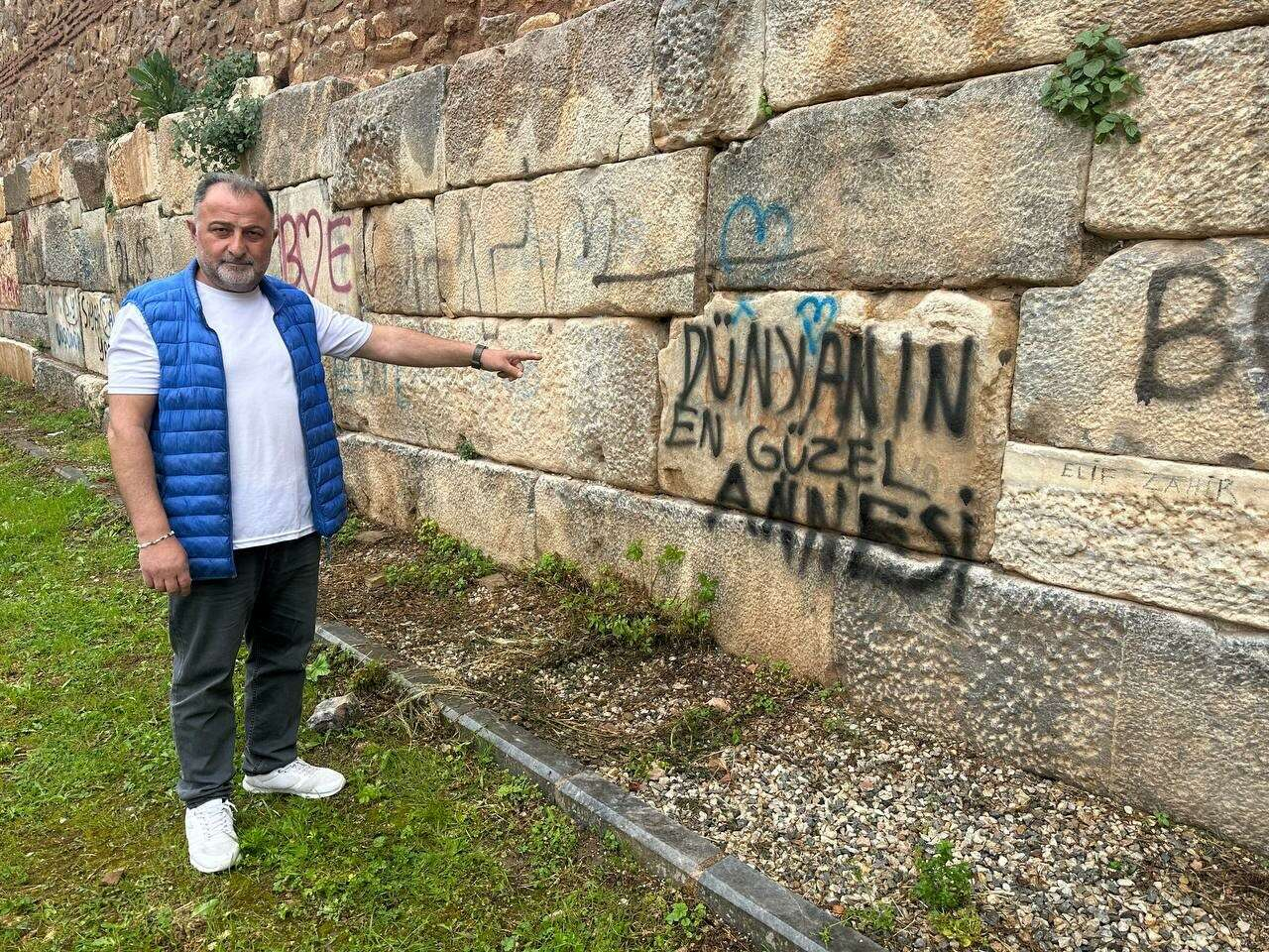 Bursa İznik'te tarihi surları yazı tahtasına çevirdiler