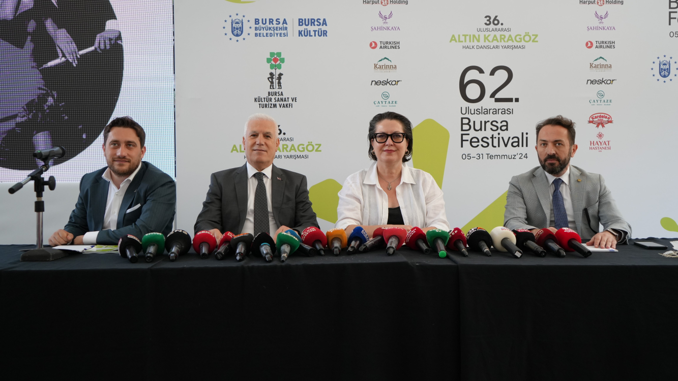 BKSTV Yönetim Kurulu Başkanı Metin Atış, Bursa’nın 1962 yılından bu yana devam eden Türkiye’nin en uzun soluklu tek etkinliği Uluslararası Bursa Festivali’nin bu yıl 62’sini gerçekleştireceklerini hatırlattı. Müzeyyen Senar ve Zeki Müren’in eşsiz sesleriyle başlayan kuşaktan kuşağa 62 yıldır devam eden bu öykünün 5 Temmuz-31 Temmuz tarihleri arasında Bursa’yı aydınlatmaya devam edeceğini söyleyen Metin Atış, Altın Karagöz Halk Dansları Yarışmasının da 36’ncısını gerçekleştireceklerini dile getirdi. Kültür, sanat kalitesini arttırmak amacıyla yapılan çalışmalara destek veren Bursa Büyükşehir Belediye Başkanı Mustafa Bozbey’e, vakfın onursal başkanı Fatma Durmaz Yılbirlik nezdinde Durmazlar Makine’ye Uludağ Premium’a, Harput Holding’e, Şahinkaya Koleji’ne, Özhan Marketler Zinciri’ne, Türk Hava Yolları’na, Karina Otel’e, Çay Taze’ye, Opel- Nescar’a, Kardelen Kestane Şekerleri’ne ve Hayat Hastanesi, Altın Karagöz Halk Dansları Yarışması’nın ana sponsoru Referans Holding’e, Durmazlar Holding’e teşekkür eden Atış, sanatseverleri ilk günün heyecanıyla yeni hatıralar biriktirecekleri festival coşkusuna eşlik etmeye davet etti. Atış, hem şehrin bu tür değerlerine sahip çıktıkları için hem de bunun bir parçası oldukları için mutluluk duyduklarını dile getirdi.