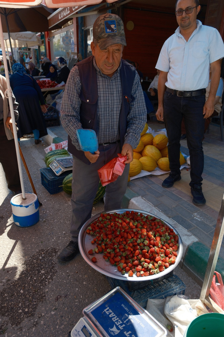 "Pazarımız salı günüdür ama pazar yerleri tezgahlar pazartesiden kurulur. Pazartesi akşamı esnafımız, köylümüz, çiftçimiz ürünlerine koyar, tezgahını kuran ve üzerine bir bez, çarşaf örter. Ertesi gün de gelir tekrardan tezgahının başına geçer ve kendi yetiştirdiği doğal ürünleri satar. Güven ve bereket içinde 700 yıldır devam eden, doğal ve organik ürünlerin satıldığı civar ilçelerden ve köylerden de gelenlerin bulunduğu bereket dolu bir pazardır."