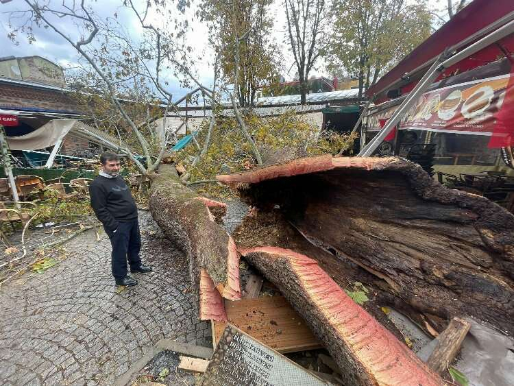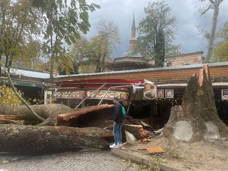 Bursa'nın Tarihi Kozahanı'nda fırtına! 250 yaşındaki tarihi çınar da dayanamadı