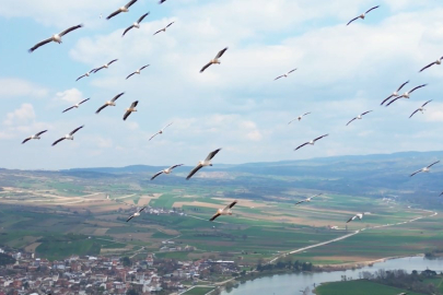 İnegöl Belediyesi Basın Halkla ilişkiler ekipleri, pelikan sürüsünü drone'la görüntüledi.