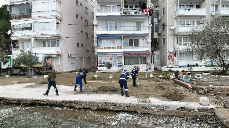 Ekiplerin hızlı hareket etmesi sayesinde ciddi bir olumsuzluk yaşanmadan duruma müdahale edildiğini kaydeden Başkan Aktaş, Park ve Bahçeler Dairesi Başkanlığı’nın 3 kepçe, 4 arazöz, 1 greyder, 4 kamyon, 10 kamyonet, 1 süpürge olmak üzere toplam 23 araç ve 90 personelle bölgede çalışma yaptığını vurguladı. Denizden sahile, 40 kamyonu aşkın malzeme taşındığını dile getiren Başkan Aktaş, BUSKİ tarafından Kurşunlu ve Gençali mahalleleri ile Cumhuriyet Mahallesi’nde de gerekli çalışmaların yapıldığını açıkladı.