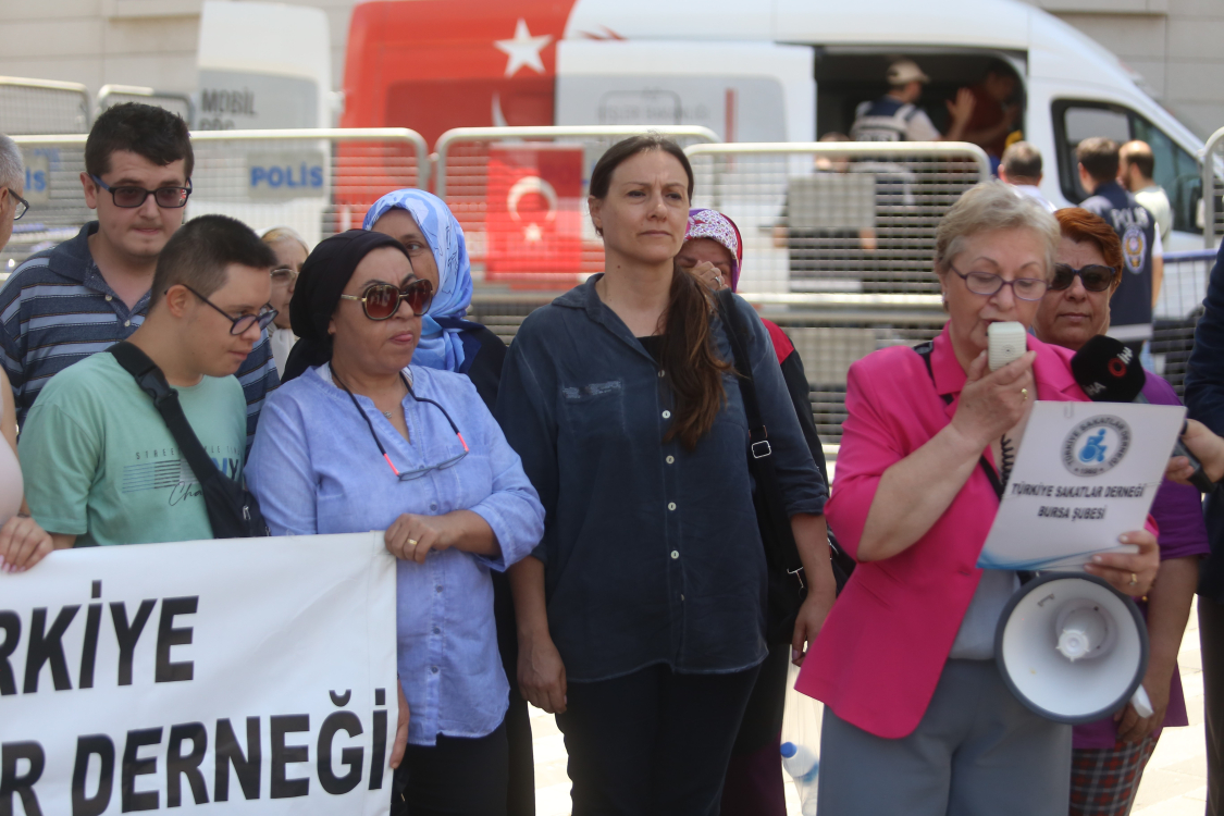 Bursa'daki engelliler 15 Temmuz Demokrasi Meydanı'nda bir araya gelerek düzenleme taslağına tepki gösterdi.