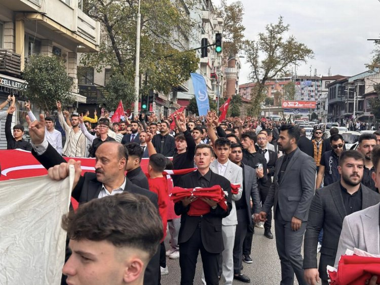 Bursa Ülkü Ocakları yaklaşık 2.000 üyenin katılımı ile Bursa’nın Çarşamba Mahallesi’nde büyük bir yürüyüş gerçekleştirdi. Yürüyüş öncesi basın açıklaması yapan Bursa Ülkü Ocakları Başkanı Mehmet Saltık: “Ülkücü hareketin neferleri olarak, Ata’mızın bizlere emanet ettiği cumhuriyetin, son nefesimize kadar emanetçisi, destekçisi ve bekçisi olacağımızı açıkça Bursa’dan bildiriyorum ve bu program vesilesiyle Ata’mızı, başbuğumuzu, başbuğlarımızı, şanlı ecdadımızı ve bütün şehitlerimizi rahmet,şükran, büyük bir saygı ve minnetle anıyor büyük Türk milletini kanımızın son damlasına kadar yaşatacağımıza söz veriyorum. Efendiler 1 asır önce kurulan Cumhuriyet, ilelebet payidar kalacaktır! ” dedi.