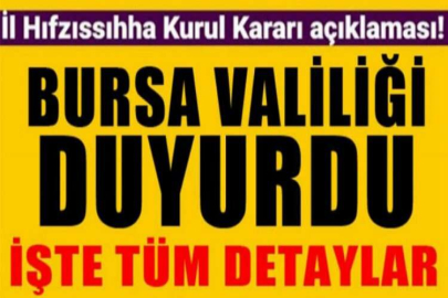 Bursa Valiliği'nden İl Hıfzıssıhha Kurul Kararı açıklaması