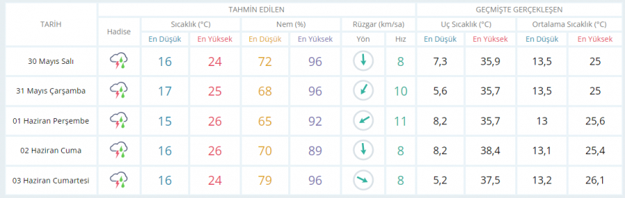 Parçalı ve çok bulutlu, (Artvin ve Rize çevreleri hariç) bölge genelinin aralıklı sağanak ve gök gürültülü sağanak yağışlı geçeceği tahmin ediliyor. Rüzgarın, Doğu Karadeniz’in iç kesimlerinde güney yönlerden kuvvetli (40-60 km/saat) eseceği tahmin ediliyor.