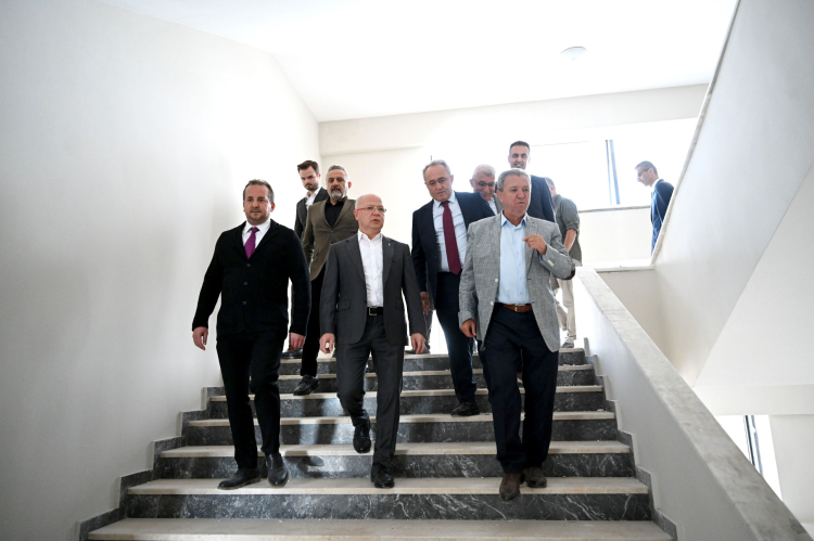 Yaklaşık bir ay içerisinde eğitim öğretim faaliyetine girmesi beklenen okulu Canbaz ve AK Parti Bursa yönetimi yerinde inceledi.
