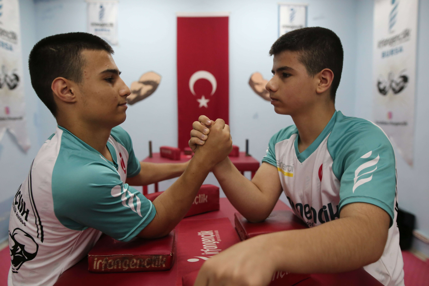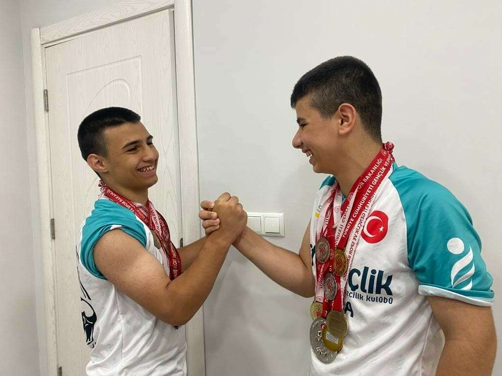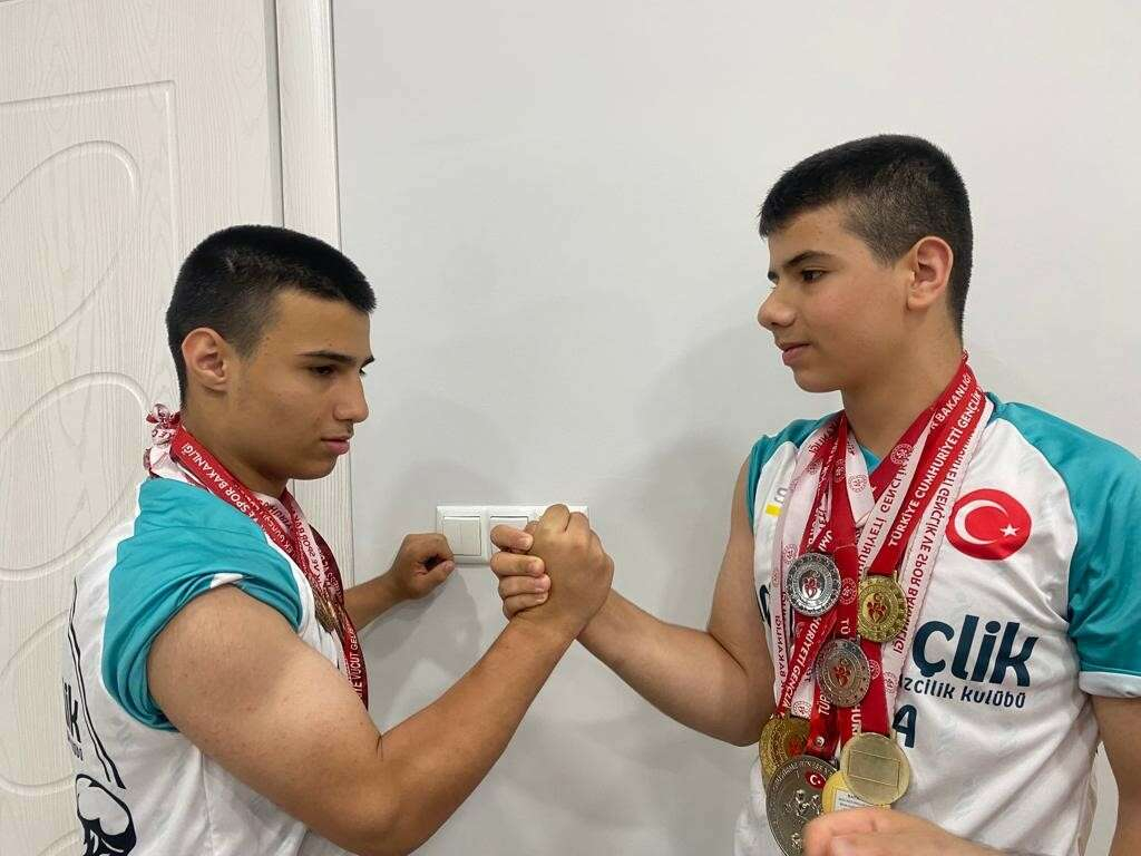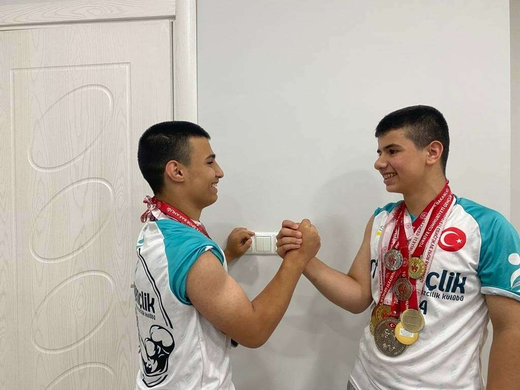 Bursa’da küçük yaşta başladıkları bilek güreşi sporuyla rakiplerini bir bir eleyen 13 yaşındaki ikiz kardeşler Berat ve Burak Coşkun, millî sporcu olmaya hak kazandı. Bileği bükülmeyen ikizler, bir çok müsabakada ise birincilik kürsüsüne birlikte çıktı.