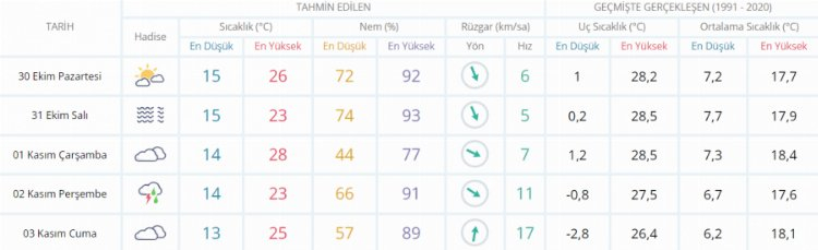 5 GÜNLÜK HAVA DURUMU TAHMİNİ