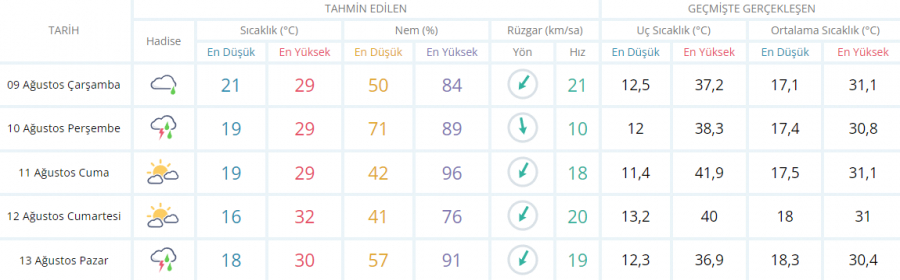 Hafta sonunun son gününde ise (PAZAR) yapılan tahminlere göre, sabah saatlerinde termometreler 18 derece olarak ölçülürken gün içerisinde çok bulutlu ve sağanak yağış geçişleriyle birlikte termometreler 30 derecelere kadar düşüyor.