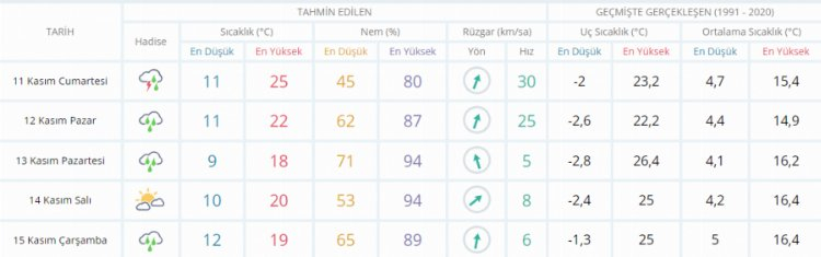 5 GÜNLÜK HAVA DURUMU TAHMİNİ