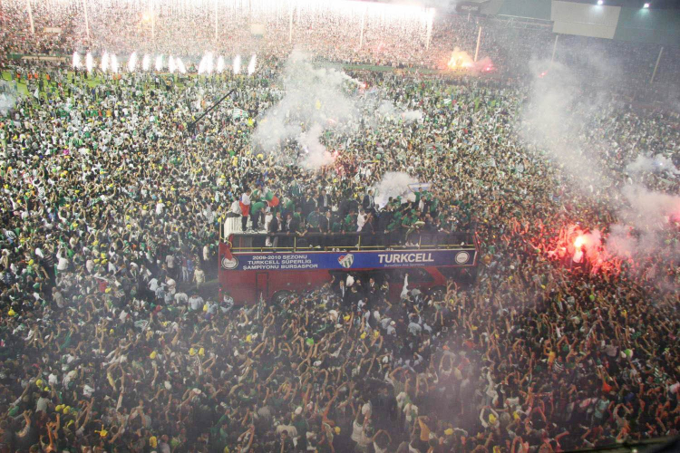 Bursaspor, şampiyonluk kupasını o dönemki Türkiye Futbol Federasyonu Başkanı Mahmut Özgener'in elinden alarak üstü açık otobüsle şehir turu atmasının ardından büyük bir coşku içinde Bursa Atatürk Stadı'nda on binlerce taraftarının huzuruna çıkmıştı. Tarihinde ilk kez şampiyonluk sevinci yaşayan Bursalılar, stadı bayram yerine çevirirken, takımın gelmesiyle sahaya akın etmiş, insan selini andıran yaşanan bu görüntüleri ulusal ve yabancı basın "Timsah istilası" manşetleriyle sütunlarına taşımıştı.